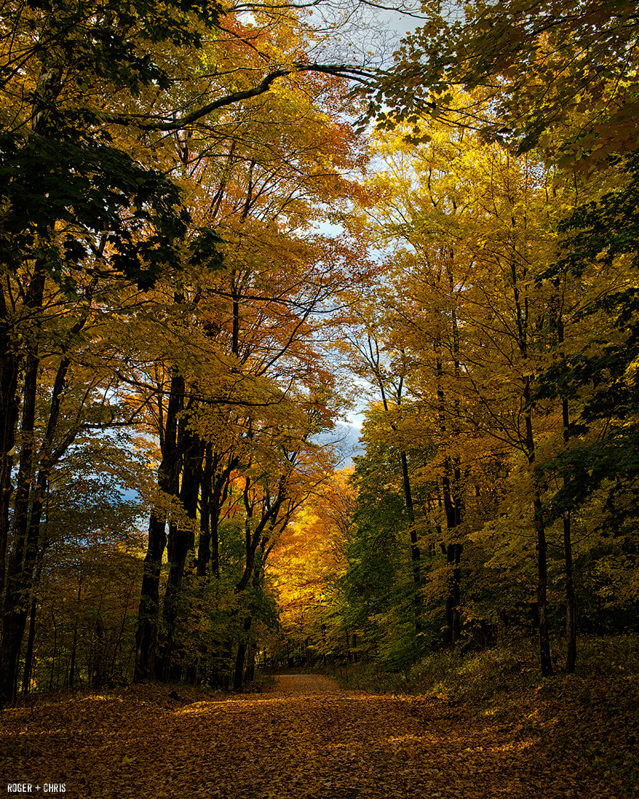▲ October 18, 2014. Fallen leaves on the road in Sharon Springs, NY.