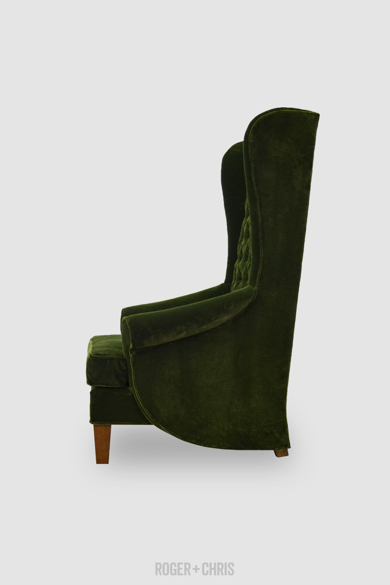 Inspector armchair with tufted backrest and t-cushion in green velvet