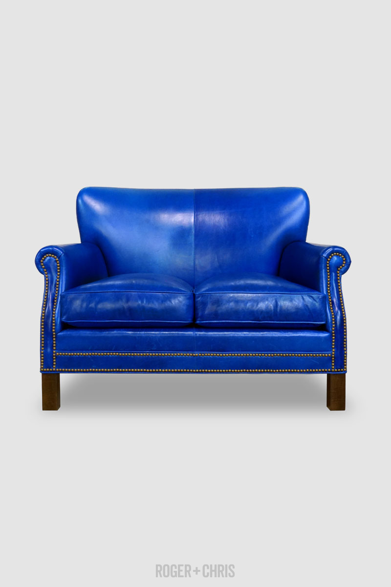 48" Jenkins love seat in Mont Blanc Baltic blue leather