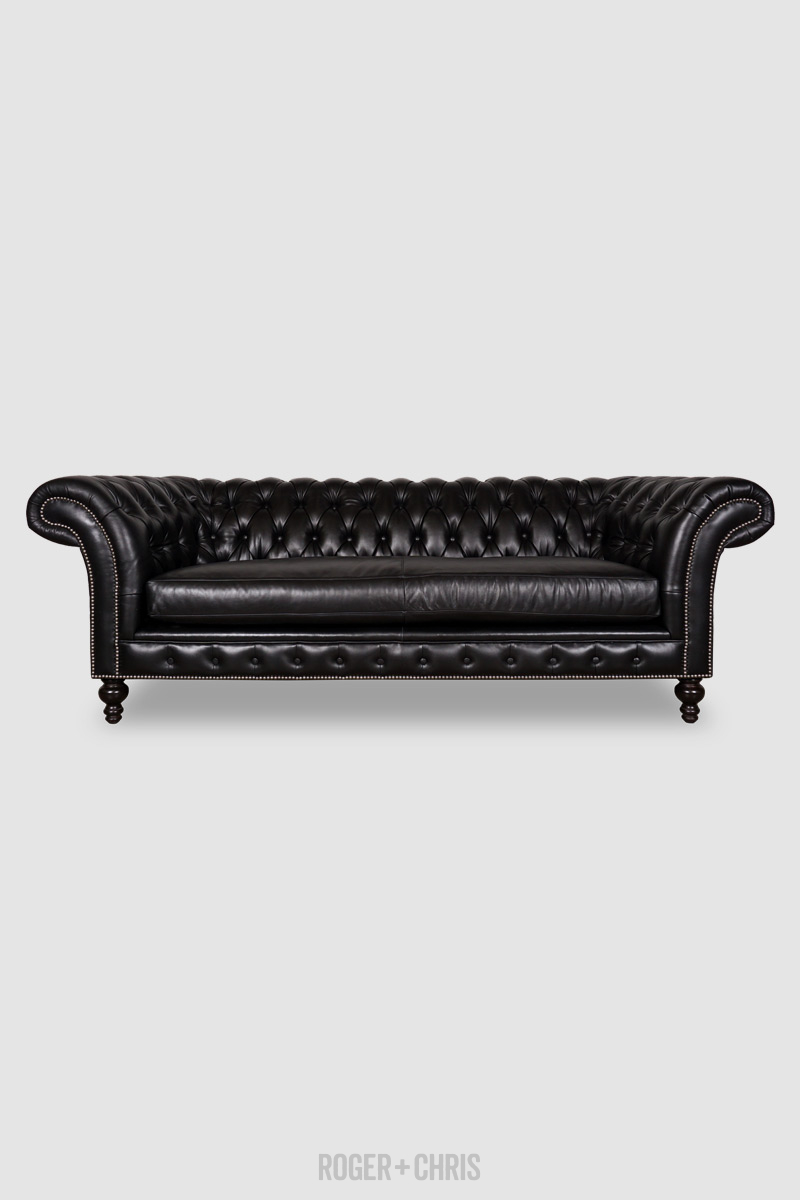 91" Lucille sofa in Perspective Pitch Dark black leather