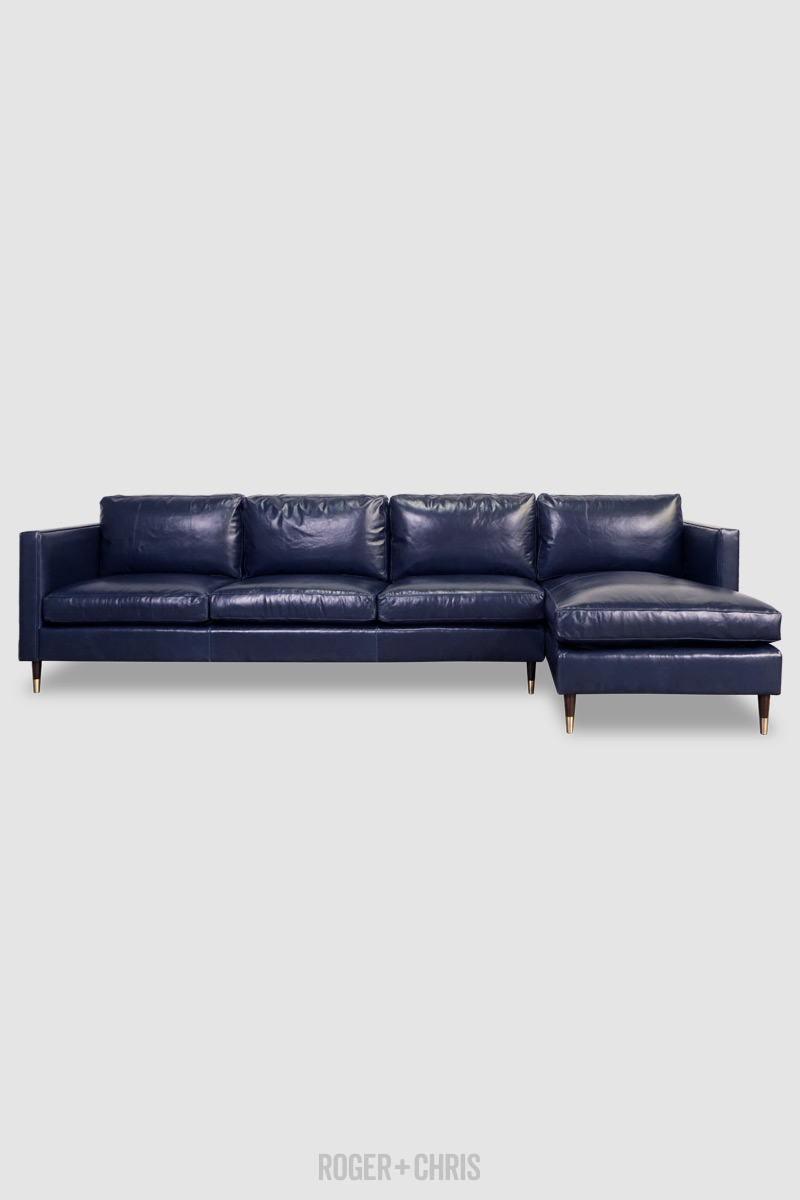 134" Natalie sofa+chaise in Firenze Galaxy blue leather